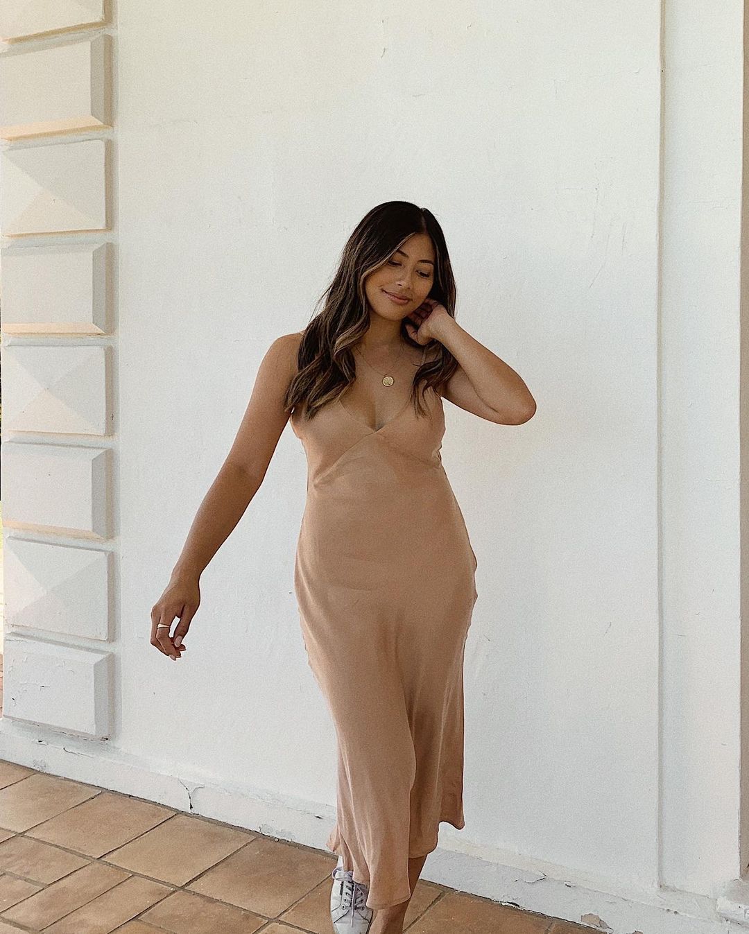The Parker Curpo Dress as seen on Anysia. Cupro is a sustainable regenerated fabric made from cotton waste called linter. The extremely soft fabric is... READ MORE