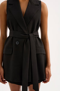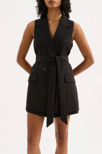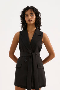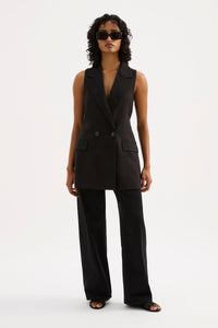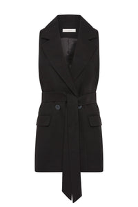 The Agnes Vest is made from a mid weight cotton lyocell blend fabrication which has a soft, breathable hand feel and subtle texture. The silhouette is a structured double breasted with relaxed to slim fit body. Features include traditional tailoring detailing throughout, branded buttons, waist tie, pockets and back vents.