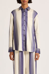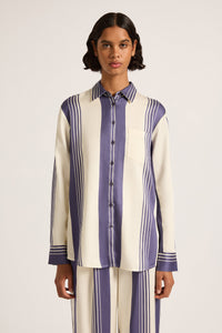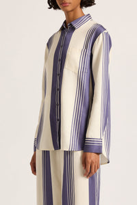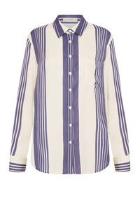 The Albion Tencel Shirt is made in 100% Tencel in our exclusive Storm Stripe. The silhouette is relaxed and oversized through the body with the length finishing below the hips. Features include classic shirt detailing with front patch pockets. Wear it open as a soft jacket or layering piece.