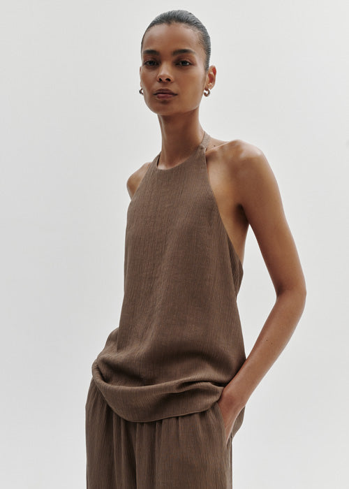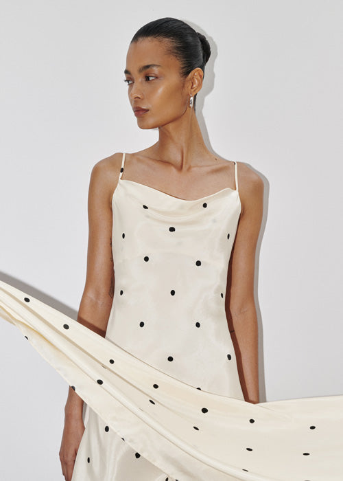The Alia Top is made from a viscose blend fabric which is lightweight and has a soft, textured hand feel. Cut on the bias, this silhouette drapes over the body softly and finishes below the hip. Features include a soft cowl neckline, keyhole opening at centre back and side seam slits.