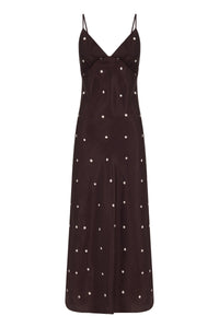 The Athena Cupro Slip Dress is designed in our exclusive Athena print, from a premium cupro fabrication which has a soft, sueded hand feel. This slip dress is ankle length and features a bias cut silhouette, straight back neckline, v neckline, gathering under the bust seams for a flattering shape and adjustable thin straps.