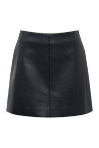 The Beaumont Vegan Leather Skirt is made from PU leather and has a smooth, buttery finish. The silhouette is high waisted, A-line and mini in length. Features include clean finish waist, jetted pocket and a branded zipper. This style is fully lined.