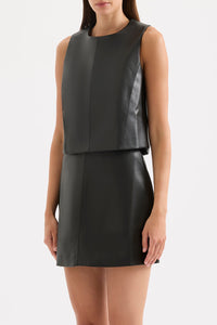 The Beaumont Vegan Leather Top is made from PU leather and has a smooth, buttery finish. The silhouette is a clean, tailored cropped fit which finishes just below the waist. Features include a crew neckline and button opening at centre back with tortoiseshell buttons.