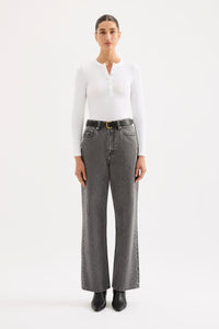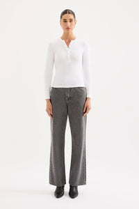 The Binx Long Sleeve Top is made in an organic cotton which has a high stretch and ribbed effect. The silhouette is a flattering close fit with a crew neckline and length finishing at the hips. Features include long fitted sleeves, snap button closure. This can be tucked in or worn over midrise bottoms.