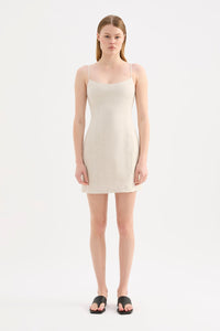 The Carmela Linen Mini Dress is made from a breathable 100% linen that has a soft hand feel. This silhouette is slim fit with an A-line mini skirt. Features include thin adjustable straps, soft scooped neckline, panelling to create a flattering fit and invisible zipper at back. This dress is fully lined.