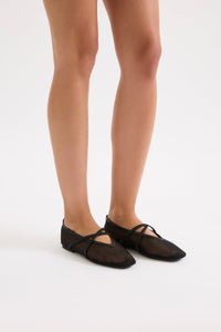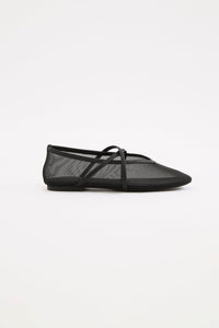 The Cecile Ballet Flat is a slip on style shoe made from smooth, fine mesh fabrication. Features include rounded square toe cap and leather binds.