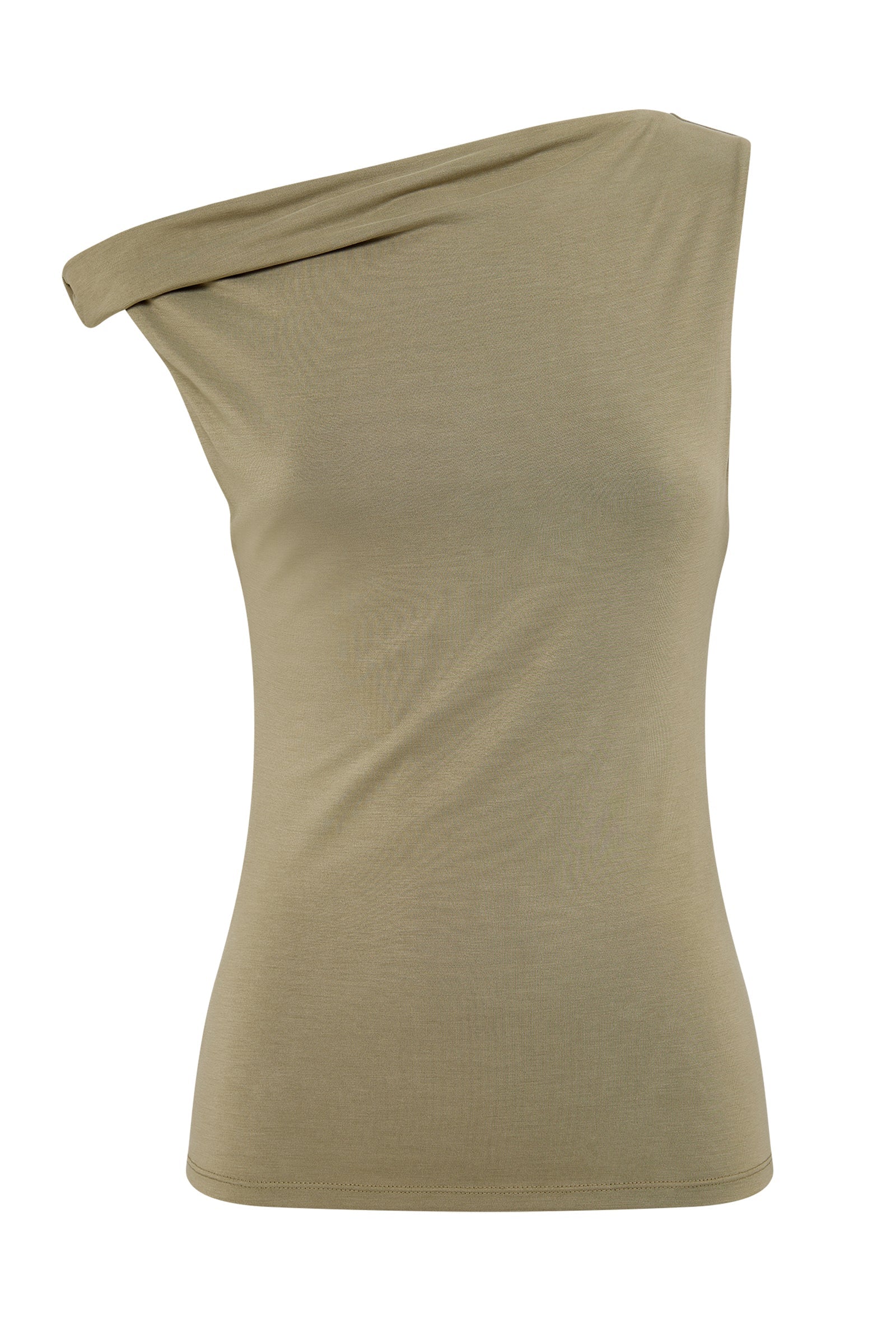 The Chelsea Top is made from a midweight modal fabrication which has a soft, slinky hand feel. The silhouette is a flattering close and finishes at the hips. Features include an asymmetric neckline, with a twist on the off shoulder sleeve.