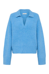 The Coleen Rugby Knit is crafted from a premium fluffy yarn, designed to be worn on its own or as a layering piece. This knit sweater has a relaxed silhouette and sits above the hips. Features include a knitted rugby collar and rib knit cuffs.