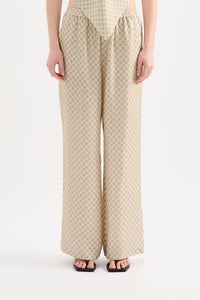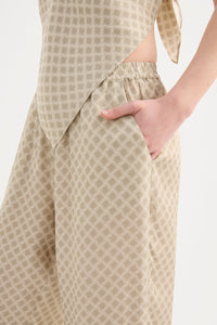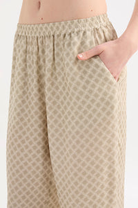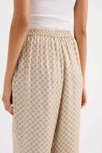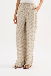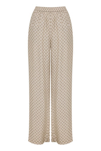 The Cosmos Cupro Pant is made in our signature cupro fabrication in our exclusive Cosmos print. The silhouette is a relaxed wide leg, full length pant. Features include an elasticated waistband, side seam pockets and slits at hem.