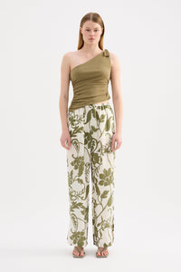 The Dahlia Cupro Pant is made in our signature cupro fabrication in our exclusive Dahlia print. The silhouette is a relaxed wide leg, full length pant. Features include an elasticated waistband, side seam pockets and slits at hem.