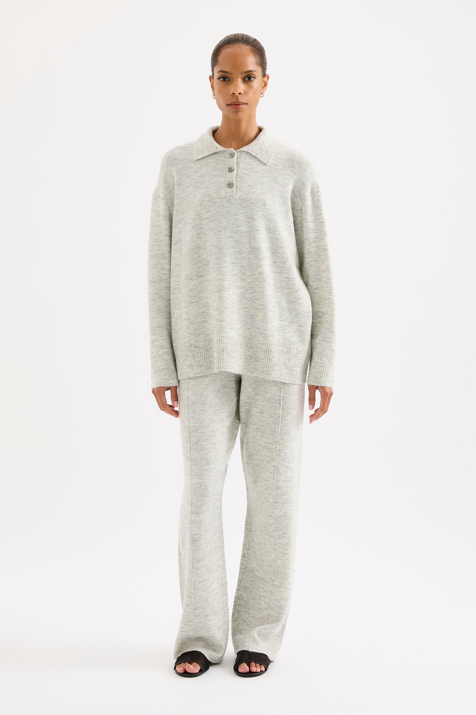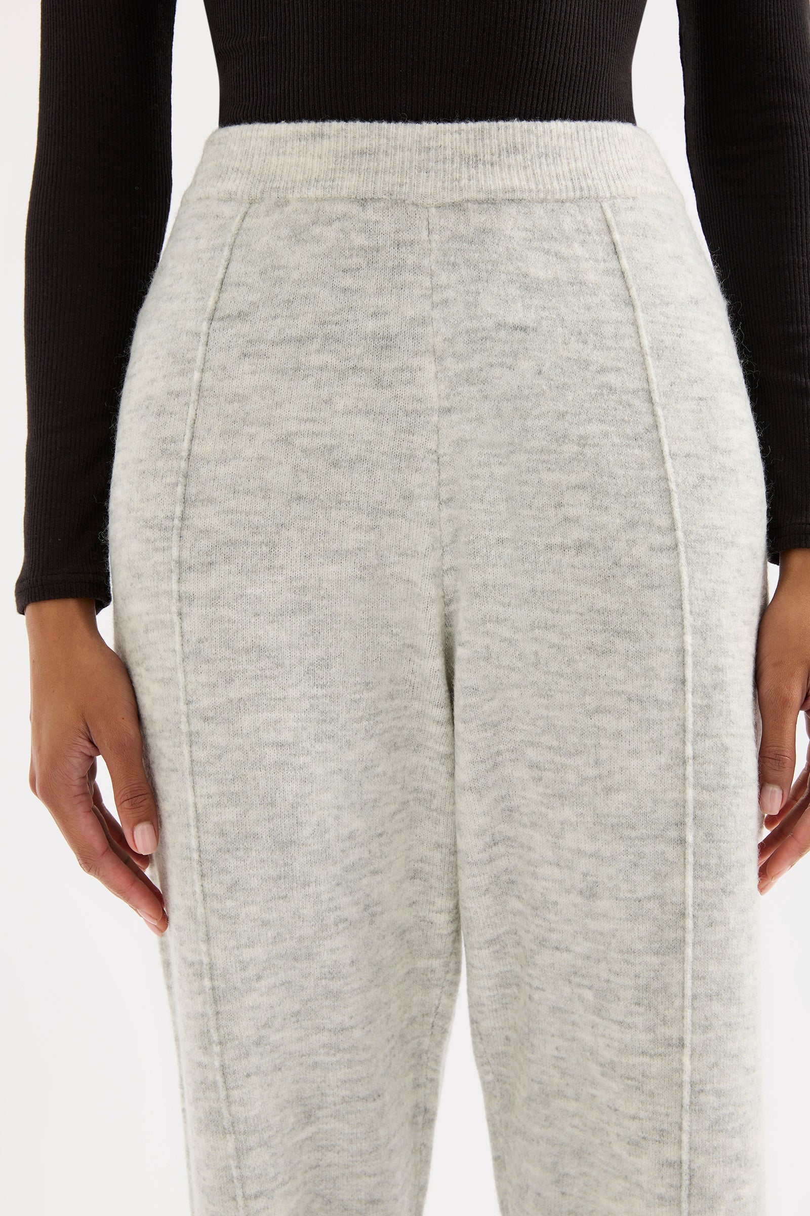 The Dallas Knit Pant is made from a soft midweight yarn which has a subtle fluffy texture. The silhouette is a high rise, full length pant with a straight leg. Features include a soft rib elasticated waistband.