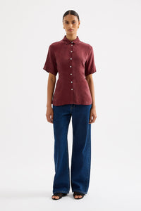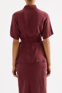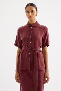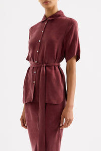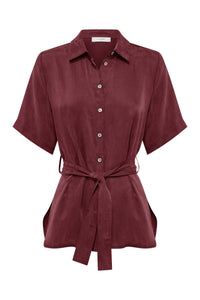 The Devin Tencel Shirt is made from a Tencel blend fabrication with a soft, sueded hand feel. The silhouette is an relaxed fit, with length finishing at the hip. Features include classic shirting details, shell buttons and a soft waist tie.