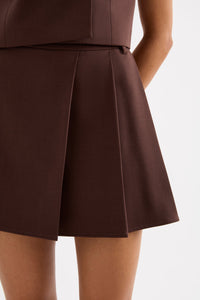 The Easton Tailored Mini Skirt is made from a classic wool blend suiting fabrication with a smooth hand feel. The silhouette is high waisted and mini in length. Features include tailored waistband with belt loops, asymmetrical pleats and invisible zipper at side seam. This style is fully lined.