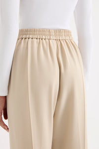 The Eryn Tailored Pant is made from a classic suiting fabrication with a smooth hand feel. The silhouette is relaxed with a wide full length leg. Features include an elasticated waistband, pin stitch down the centre of the legs and side seam pockets.