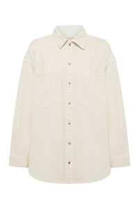 The Esme Denim Overshirt is made from 8 oz 100% organic cotton denim, wih an authentic stone wash in natural. The silhouette is oversized with a drop shoulder and length finishing below the hips. Features include front patch pockets & press stud buttons through centre and sleeve cuff.