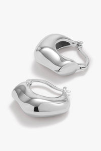 The Kaden Hoops is designed in a softly shaped asymmetric silhouette from rhodium plating. These staple earrings are nickel free and feature a polished, smooth finish and latch clasp.