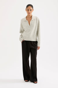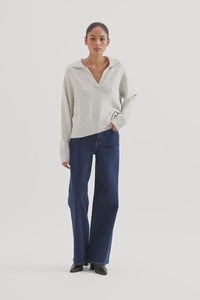 The Kinsley Rugby Knit is made from a premium fluffy yarn with an extra soft hand feel. The fit is relaxed with long sleeves and length finishing at the hips. Features include a fully knitted rugby collar and a soft rib hemline and cuffs.