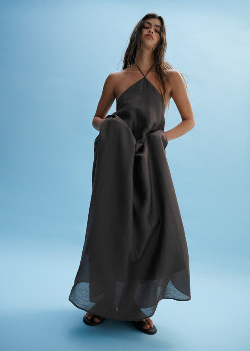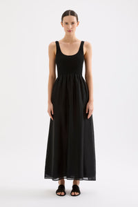The Kova Maxi Dress is made from a light weight lyocell blend fabric which is slightly sheer and has a smooth hand feel. The silhouette is feminine and relaxed with a shirred bodice and soft billowing skirt that finishes above the ankle. Features include a scooped neckline with thick straps. This dress is fully lined.