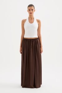 The Leandra Maxi Skirt is created out of a lyocell blend fabric which is lightweight and has a smooth hand feel. The silhouette has an elasticated waist creating soft gathers down the length of the skirt. This skirt features a soft elasticated waistband with thin rouleau drawcord, side seam pockets and is maxi length.