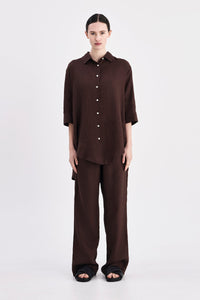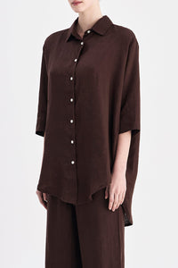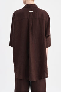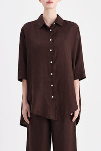The Lounge Linen Longline Shirt is made in a premium 100% organic French linen which has been washed down for a soft and breathable hand feel. The silhouette is relaxed and oversized with a long billowing hemline and side slits. Features include classic shirt detailing with collared neckline, button front opening, 3/4 sleeves and a Nude Lucy branded label. This Longline Shirt can be worn by itself or paired with a Nude Lounge bottom.