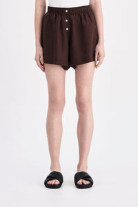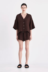 The Lounge Linen Short is made in a premium 100% organic French linen which has been washed down for a soft and breathable hand feel. The silhouette is a clean casual fit with a wide leg opening. Features include an elasticated waistband with a mock button front, side seam pockets and back patch pockets with a Nude Lucy branded label. Pair with a Nude Lounge top in coordinating colours.