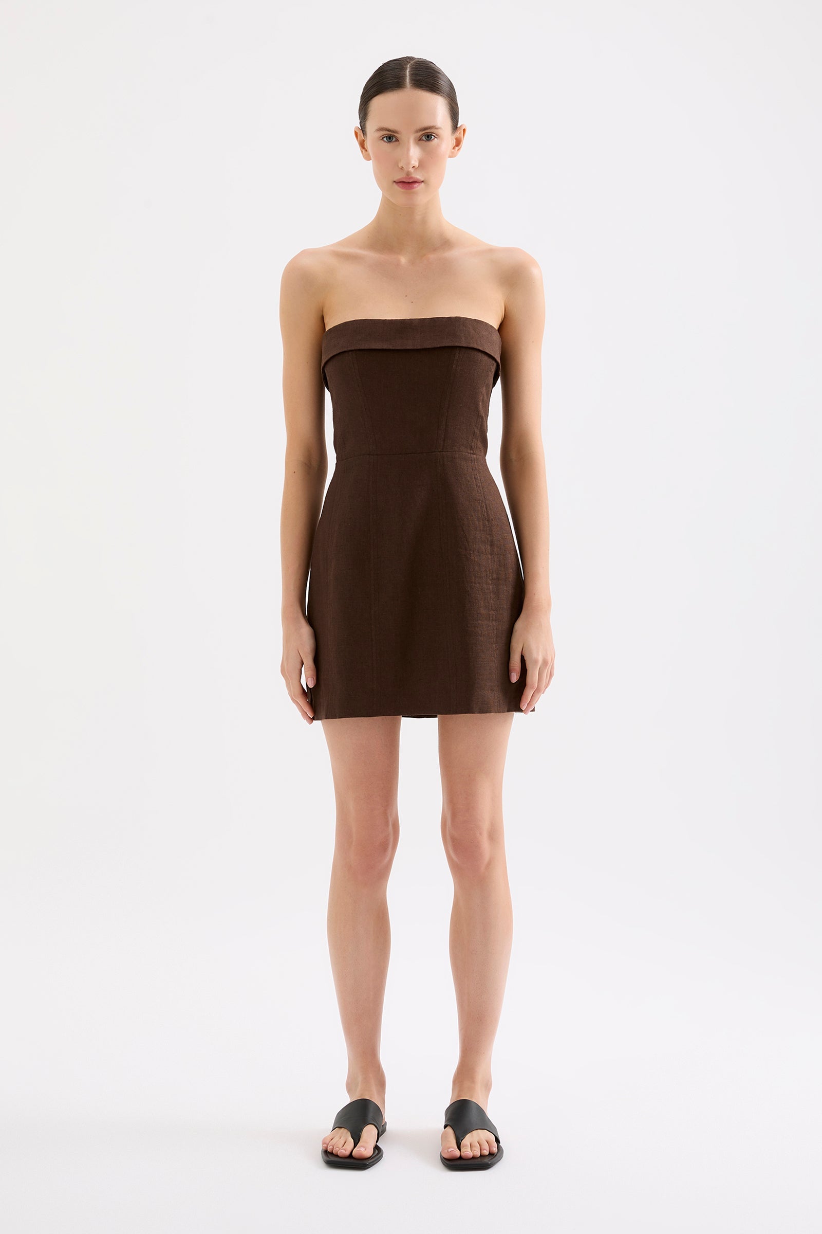 The Lyra Linen Dress in white is made from 100% linen which has been washed for a soft, breathable hand feel. The strapless silhouette is fitted at the bodice with an a line skirt that is mini in length. Features include panels to create shaping and zipper at centre back. This dress is fully lined.