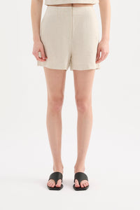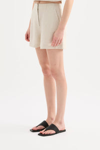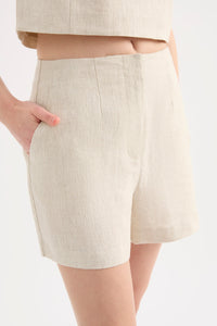 The Marli Linen Short is made from a premium linen which has been washed for a soft, breathable hand feel. The silhouette is a classic tailored shape worn high on the waist and relaxed through hip and leg. Features include a functioning fly front, clean finish waist and side seam pockets.
