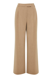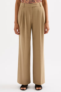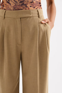 The Mercer Tailored Pant is made from a classic wool blend suiting fabrication with a smooth hand feel. The silhouette is tailored with a high rise and wide leg. Features include front pleats at waist, concealed trouser hook closure and Nude Lucy branded internal waist banding.