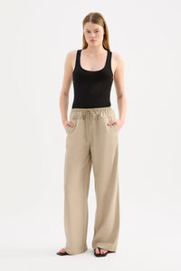 The Nova Pant is made from a light weight viscose blend fabrication which has a dry hand feel. The silhouette is a relaxed fit with a wide leg. Features include a satin yoke feature, elasticated waistband, drawcord and side seam pockets.