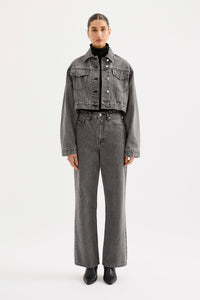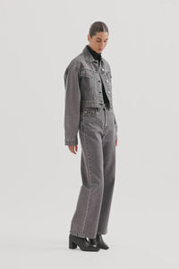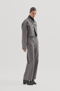 The Organic Crop Denim Jacket is made from our 12 oz 100% organic cotton denim with an authentic stone wash. The silhouette is relaxed with a drop shoulder and cropped length. Features include front chest pockets, side welt pockets, panel detailing & branded shank button through centre and sleeve cuff.