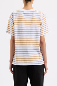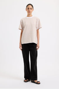 The Organic Stripe Boyfriend Tee is made from a heavyweight organic cotton jersey, which has been washed down for a breathable finish and soft hand feel. The silhouette is a larger boxy fit with length finishing just below the hips. Features include a crew neckline and short sleeves.