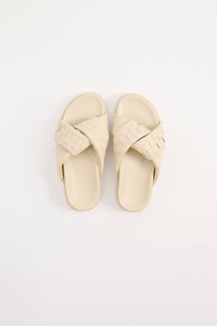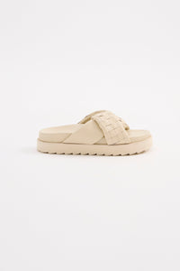 The Oscar Slide is made from premium 100% sheep leather upper, grounded on a solid rubber base. Features include twisted straps with woven detail and a platform sole with arched shaping for extra support and comfort.