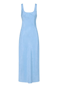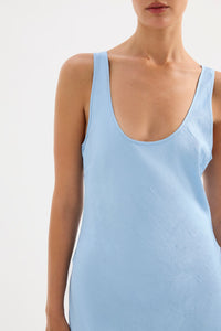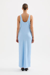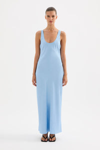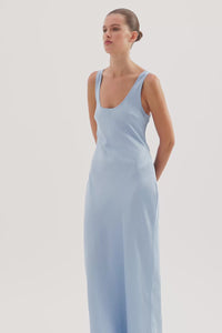The Pandora Dress is made from a premium crushed satin featuring a luminous, gloss finish and subtle texture. Cut on the bias, this silhouette drapes over the body softly and finishes at ankle length. Features include a scoop neckline and thick straps.