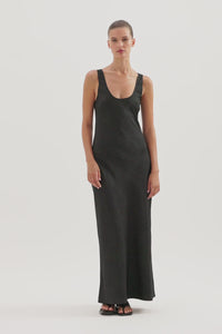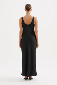 The Pandora Dress is made from a premium crushed satin featuring a luminous, gloss finish and subtle texture. Cut on the bias, this silhouette drapes over the body softly and finishes at ankle length. Features include a scoop neckline and thick straps.