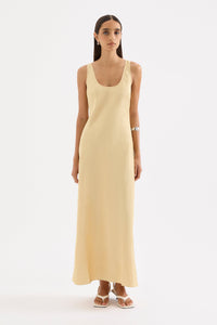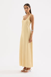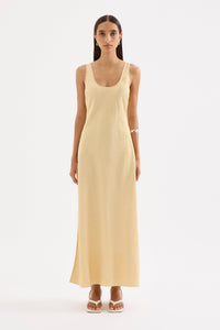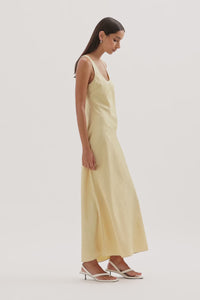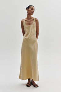 The Pandora Dress is made from a premium crushed satin featuring a luminous, gloss finish and subtle texture. Cut on the bias, this silhouette drapes over the body softly and finishes at ankle length. Features include a scoop neckline and thick straps.