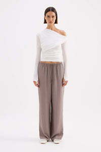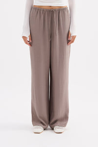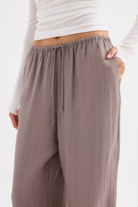 The Scarlet Pant is made from a lightweight viscose linen blend fabrication which has a soft hand feel and subtle texture. This pant is wide leg with a full length silhouette and features side seam pockets, elastic waistband and drawcord.
