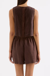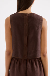The Sian Linen Top is crafted from a breathable, premium linen fabrication with a soft hand feel. This top is cropped length and features a crew neckline and back button closure.