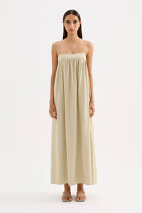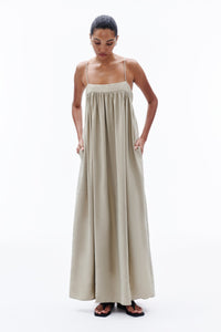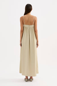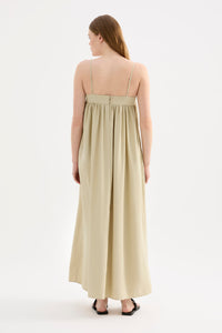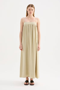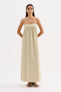 The Sienna Maxi Dress is made from a lightweight modal blend fabrication which has a soft hand feel. The silhouette is relaxed with a soft billowing skirt finishing at ankle length. Features include side seam pockets, neckline yoke with gathers at bust, double button with split opening and thin adjustable straps.