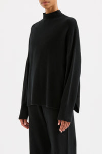 The Taylor Knit is made from a midweight yarn which is super soft and has a subtle fluffy texture. The fit is oversized with length finishing at the hips. Features include a raised neckline with a roll finish, and soft ribbed cuffs and hem.