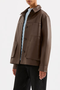 The Telsey Faux Leather Jacker is made from PU leather and has a smooth, buttery finish. The silhouette is relaxed with a drop shoulder and length finishing above the hips. Features include front button opening, patch pockets and vent on back.
