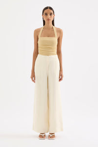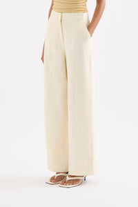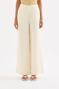 The Theo Linen Pant is made from a premium linen which has been washed for a smooth, soft hand feel. The silhouette is a classic tailored fit with a high waist, wide legs and length finishing full length. Features include a functioning fly front and side seam pockets.