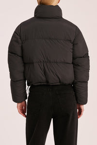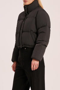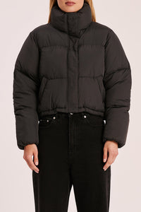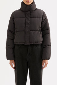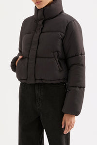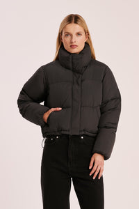 The Topher Puffer Jacket is a fully padded outerwear piece, made from a 100% recycled lightweight breathable nylon. The silhouette is a slim shape with high neck and length just above the hips. Features include an adjustable elasticated drawstring through the hem, elasticated sleeve cuffs, metal zip opening, and side pockets.