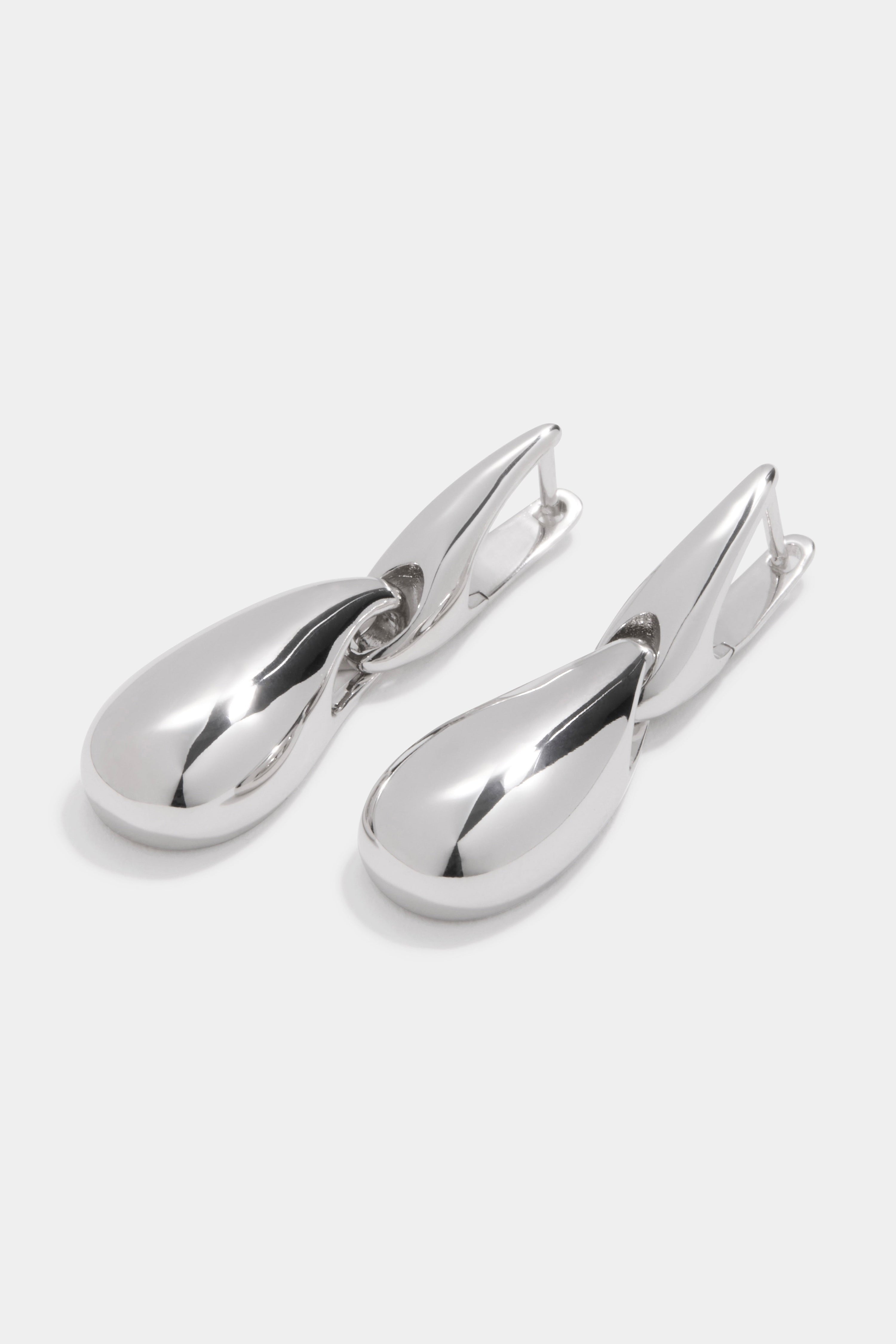 The Valentine Drop Earrings is designed in a detailed tear drop shape with rhodium plating. It features a polished, smooth finish and has a click through fastening.