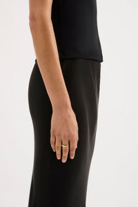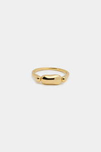 The Vera Ring is made with 18 karat gold plating and is designed in a thin silhouette. It has a polished, smooth finish, solid shape and is adjustable.