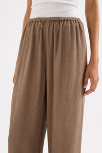 The Winfield Pant is made from a crinkle textured fabric which has a dry, lightweight hand feel. The silhouette is relaxed with a wide full length leg. Features include an elasticated waistband and side seam pockets.