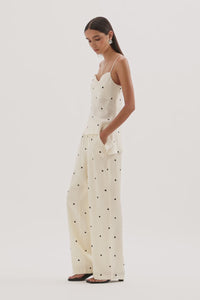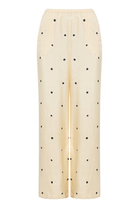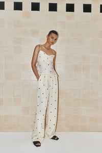 The Xander Pant is made in our exclusive Xander print from a lightweight lycocell blend fabrication. It has a smooth, drapey hand feel with a high-rise fit and wide leg silhouette. It features an elastic waistband for comfort and side seam pockets.