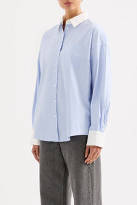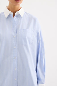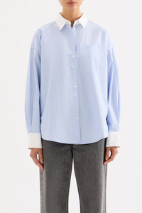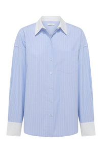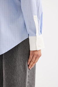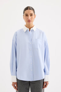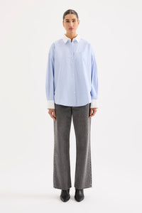 The Yuri Shirt is made from a organic cotton poplin which has be washed for a smooth, crisp hand feel. The silhouette is oversized throughout with length finishing on the hips. Features include front patch pockets, a large cuff and Nude Lucy branded buttons.