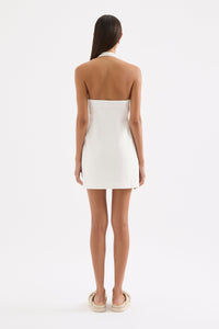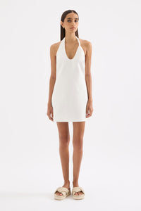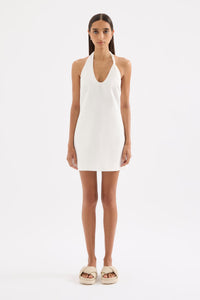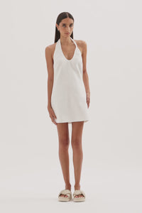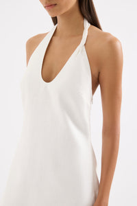 The Zayda Linen Mini Dress is crafted from 100% linen with a breathable, soft hand feel. This halter neck dress has a flattering slim fit silhouette and is mini length. It features a scooped neckline, asymmetric twisted strap detail and invisible zipper at centre back. This dress is fully lined.
